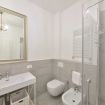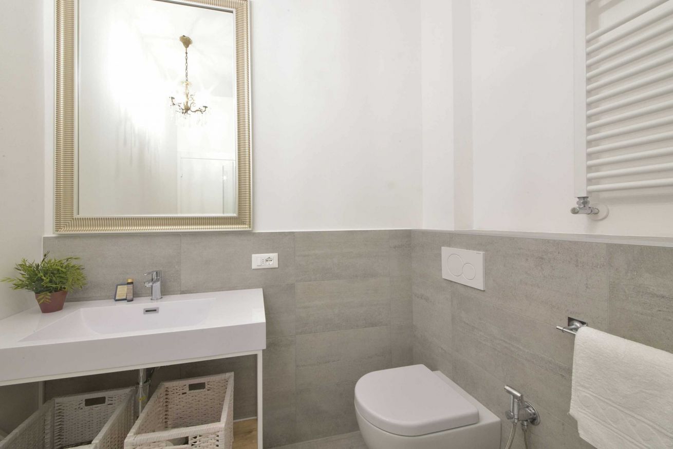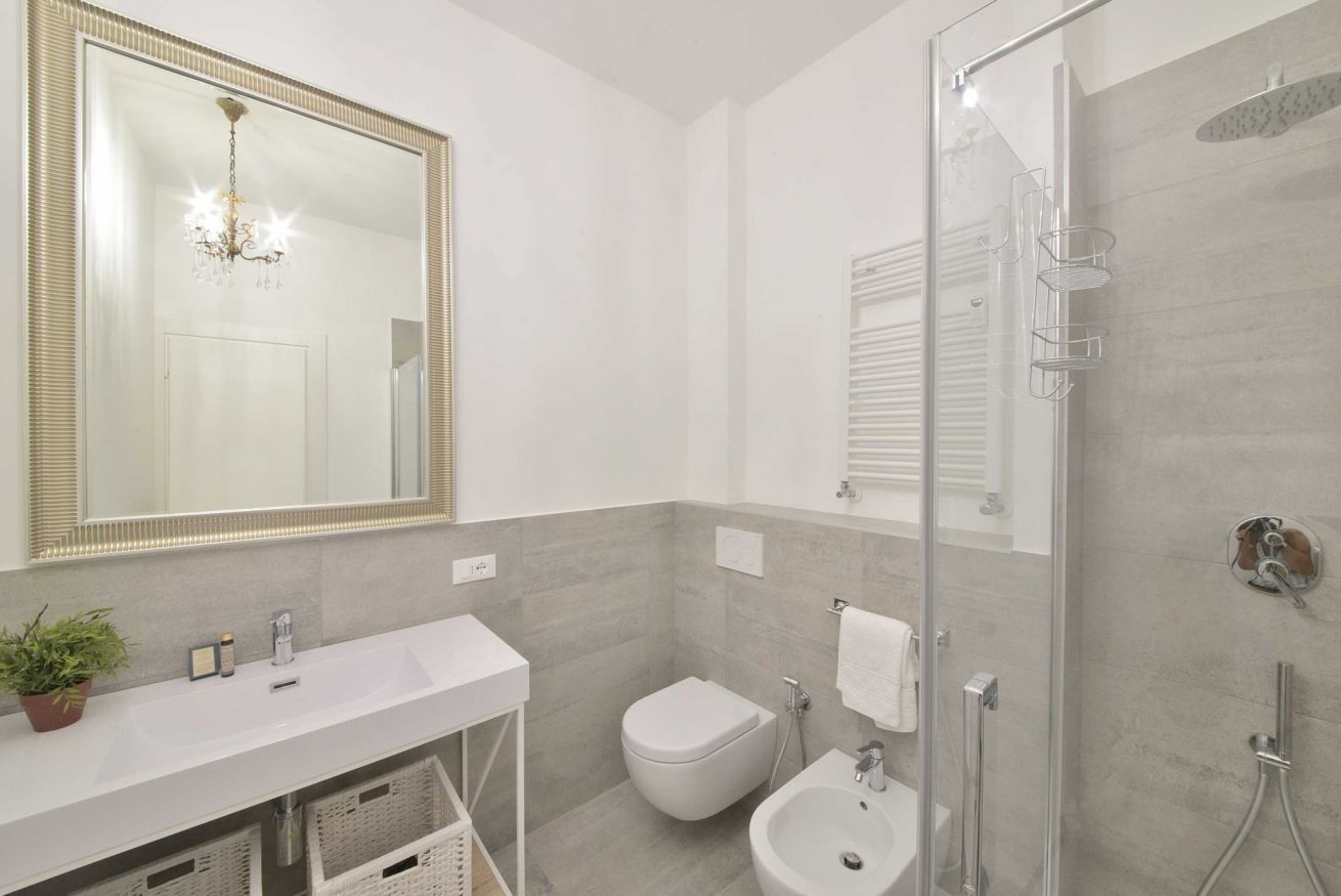 - Bagno moderno con lavabo, bidet, WC e doccia