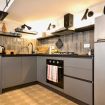 L’appartamento è dotato di tutti i comfort moderni: Wi-Fi veloce, aria condizionata, lavatrice e lavastoviglie. Gli spazi interni si articolano in un luminoso soggiorno con cucina a vista completamente attrezzata, una camera da letto matrimoniale e un bagno con ampia doccia.